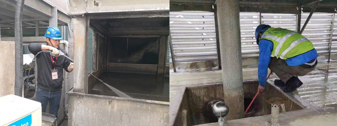 4、人工清理冷却塔、集水槽内积存的垢渣、污物。